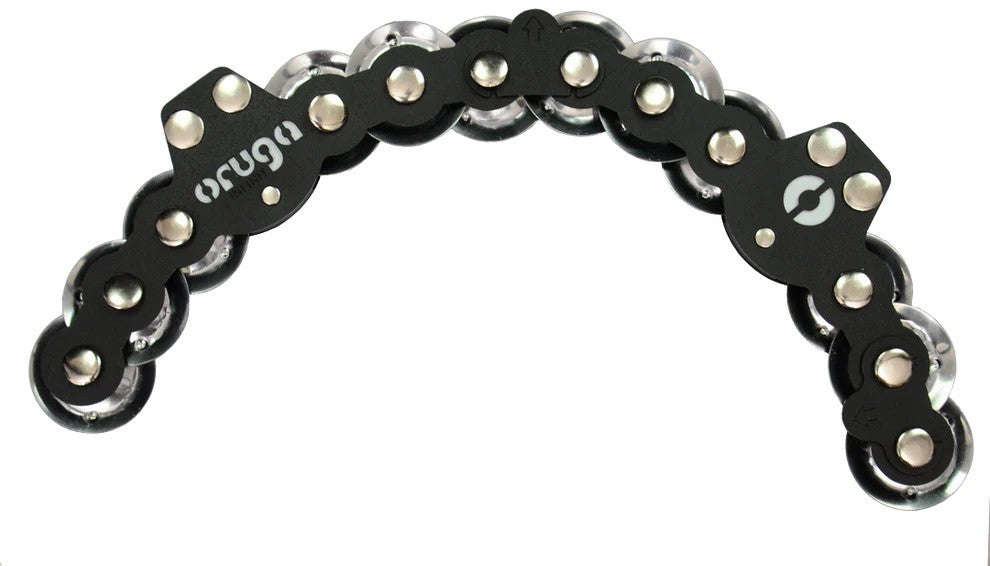 The ORUGA Medium Sleigh Bells deliver a dynamic and natural-sounding jingle effect through a magnetic floating system that mounts securely to any standard steel drum hoop. With 48 steel sleigh bells, this accessory responds with a bright shimmer when the drumhead is struck—without compromising the original tone.
