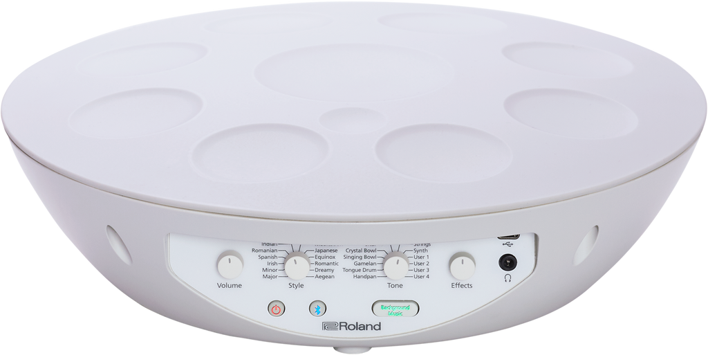 • Handpan, tongue drum, gamelan, singing bowl, and other preset tones, plus four user slots with selectable sound variations