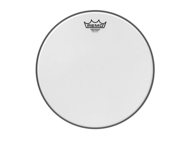 The Ambassador White Suede features Remo's proprietary texturing process that produces warm, open resonant tones for Toms and Snare drums. Constructed with 1-ply of 10-mil treated White Suede film, Ambassador White Suede drumheads provide a warm attack and soft feel. Remo's proprietary texturing process produces a textured white non-reflective look. Available is sizes 8”- 18”.
