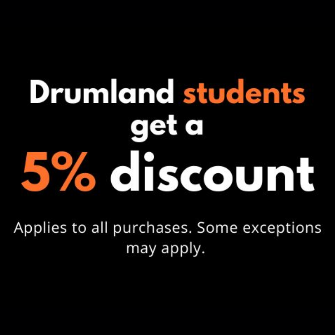 Drumland students get a 5% discount! *Applies to all purchases. Some exceptions may apply.